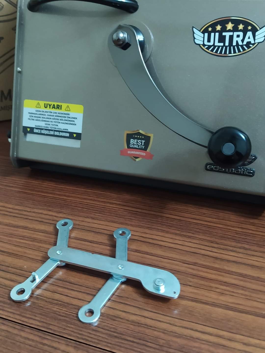 Eds Ultra Matic  Sigara Sarma Makinesi Dört Ayak - Ahtapot Özellikleri ORJİNAL YEDEK PARÇADIR.YAN SANAYİ PARÇALARLA KIYASLAMAYIN Eds Ultra Matic Slim versiyonu olan makinenin dört ayağıdır. Bu mekanizma dört adet halka, gövde ve üzerinde bulunan bir yuvarlak rulmandan oluşuyor. Dört halkadan iki tanesi makinenin gövdesine iki taneisde bıçağa takılır. Özellikle bıçağa takılan halkalarda uzun süreli kullanımdan sonra genişleme meydana gelir. Bu durumda bıçak çalışma esnasında gereğinden fazla oynama yapar ve makine boş durumda çalışırken tütün koyduğunuzda takılır. Makinenin rahat çalışması ve düzgün tütün dolumunun gerçekleşmesi için bu mekanizmanın değişmesi gerekir. Bir ayarlı anahtar yardımı ile sizde kolayca bunun değişimini yapabilirsiniz. ORJİNAL YEDEK PARÇADIR.YAN SANAYİ PARÇALARLA KIYASLAMAYIN